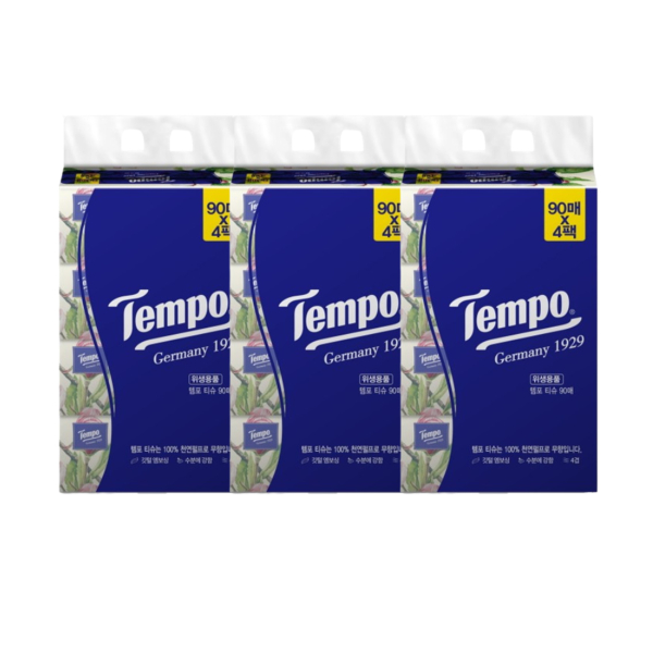 독일 템포 소프트팩 4겹 천연펄프 미용티슈 90매 4입 X 3팩