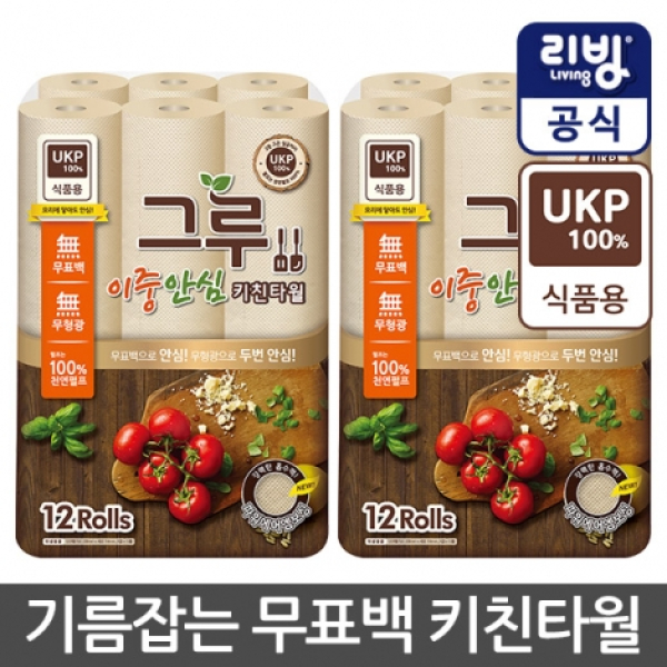 삼정펄프 그루 무표백 키친타올 120매 12롤 x2