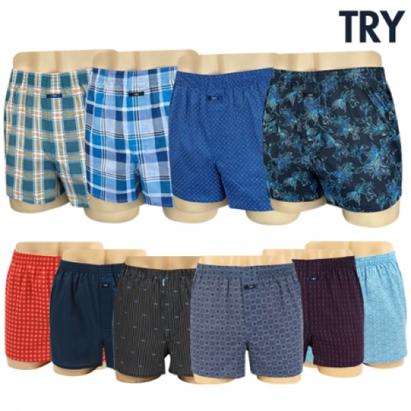 [트라이]남성 통기성 좋은 순면 사각 트렁크팬티 10종세트