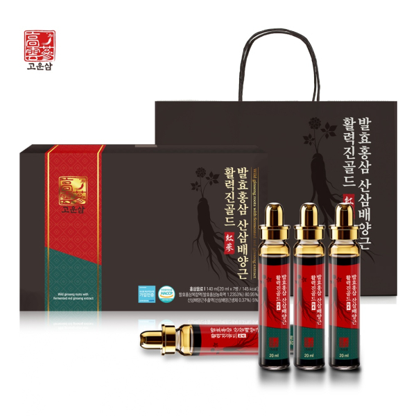 [고운삼] 발효홍삼 산삼배양근 활력진골드 앰플20ml x 7병(쇼핑백 포함)