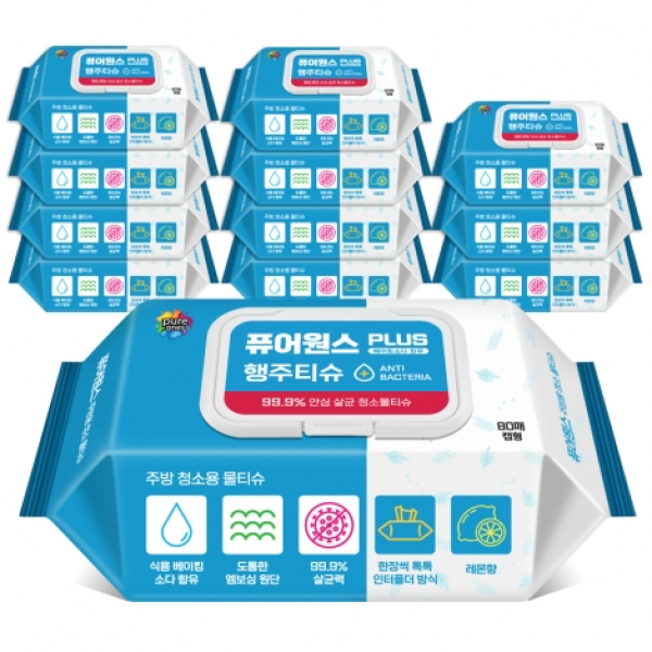 [퓨어원스+] 홈케어 청소 살균물티슈 주방용 80매x12팩/24팩(캡형) [품절]