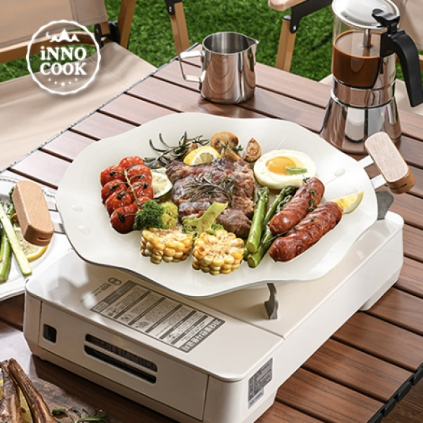 [이노쿡]연꽃 그릴팬&플레이트 아이보리/카키