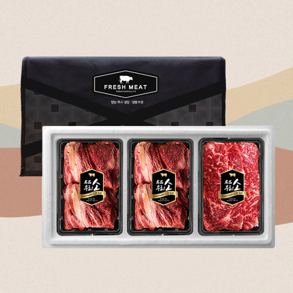 더 부드러운 국내산 소고기 선물세트 3호(총1.2kg/각300g/꽃등심+채끝+불고기+국거리)