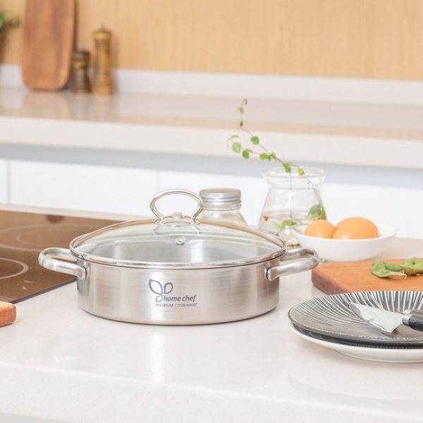 [홈셰프]IH인덕션 3중 스텐레스 후라이팬3종세트(28cm+28cm웍팬+유리뚜겅28cm)