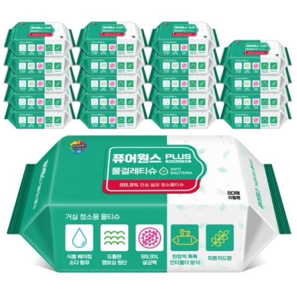 [퓨어원스+]홈케어 청소 살균물티슈 거실용 80매x20팩(리필형)