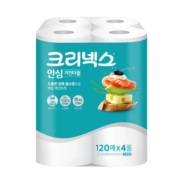 크리넥스 안심 키친타올 2겹 (120매x4롤) x1팩 무형광