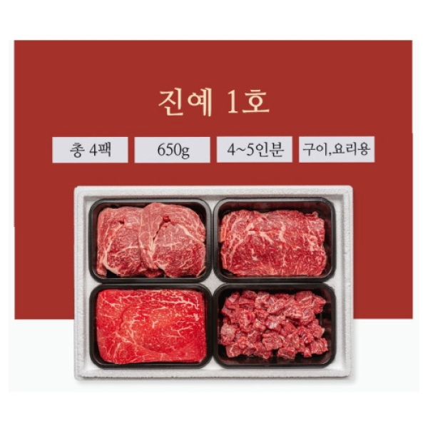 [진우담] 1++한우 모듬 진예 1호 650g(꽃등심200g+채끝150g+불고기150g+국거리150g)