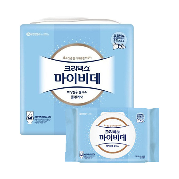 크리넥스 마이비데 클린케어 화장실용 물티슈 캡형 46매 4입 x1개