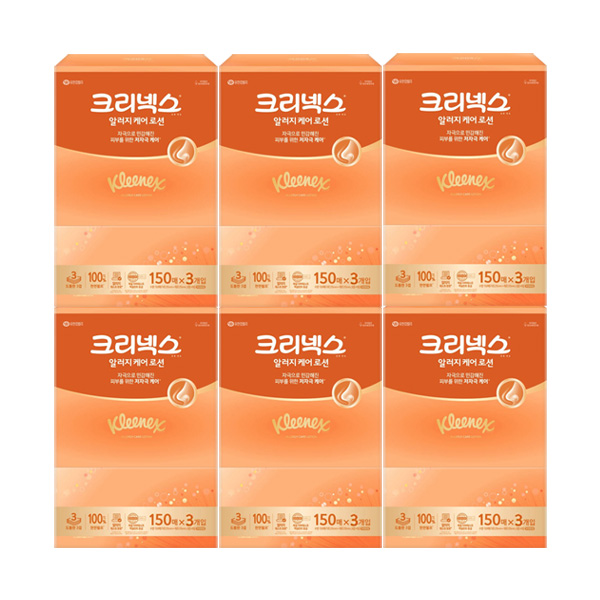 크리넥스 알러지 케어 로션 각티슈 150매 3입 x6팩 로션티슈