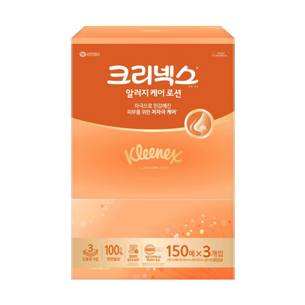 크리넥스 알러지 케어 로션 각티슈 150매 3입 x1팩 로션티슈