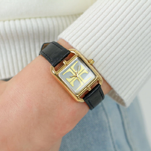 [탠디] 시그니쳐 모던스퀘어 여성용 가죽 시계 T-1916 골드블랙