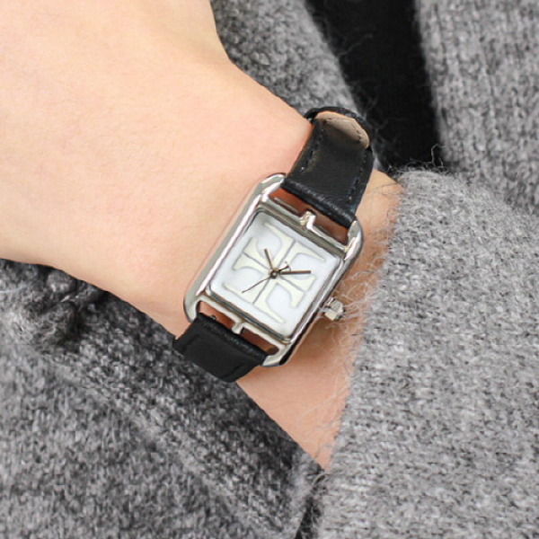 [탠디] 시그니쳐 모던스퀘어 여성용 가죽 시계 T-1916 실버블랙