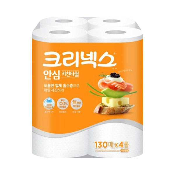 크리넥스 안심 3겹 뽑아쓰는 키친타올 110매x4입 1팩