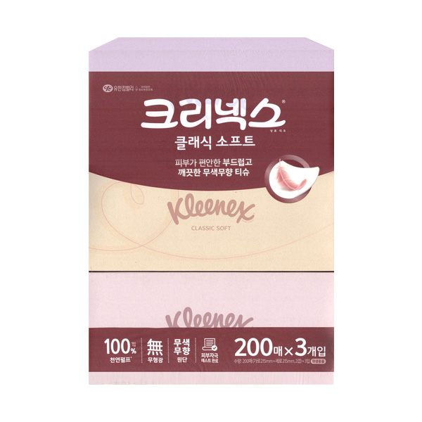 크리넥스 클래식 소프트 무형광 각티슈 (200매 3입) x1팩