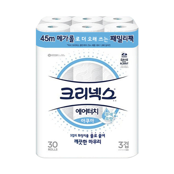 크리넥스 3겹 아쿠아 메가롤 45m 30롤 x1팩