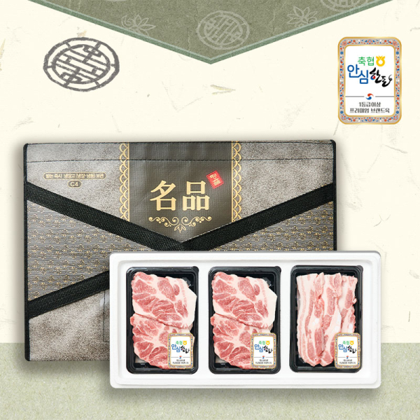 [축협안심한돈] 1등급 알뜰선물세트 2호 900g (목살300,목살300,삼겹300)