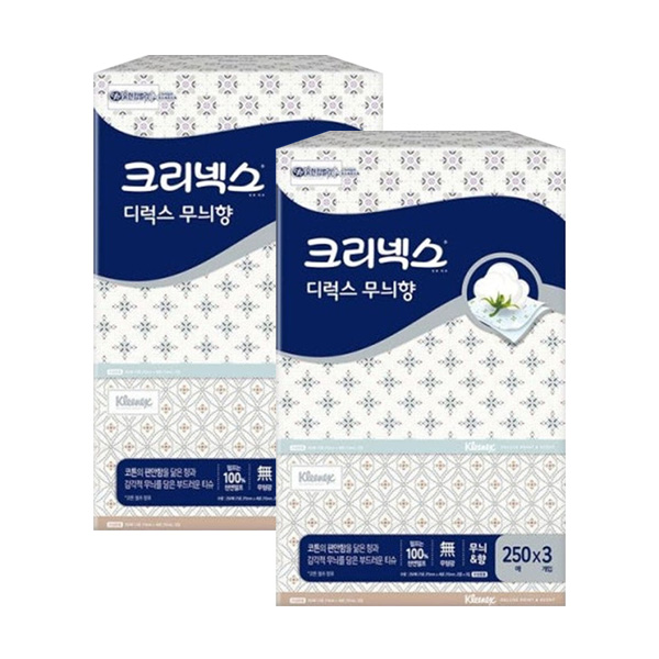크리넥스 디럭스 무늬향 각티슈 250매 3입 x2팩