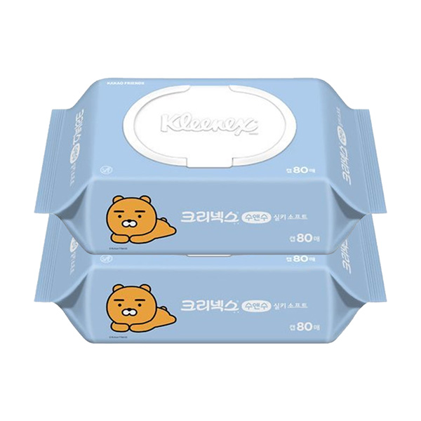 크리넥스 수앤수 물티슈 카카오 (라이언) 캡형 80매 - 2개