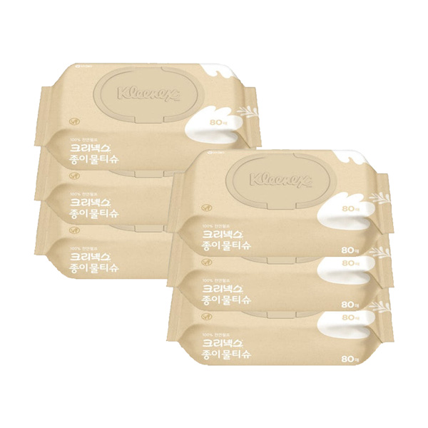 크리넥스 100% 천연펄프 종이물티슈 80매 x6개