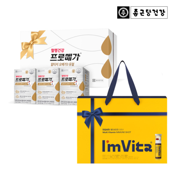 [종근당건강] 아임비타 멀티비타민 이뮨샷 선물세트 (20병) + [종근당건강] 프로메가 알티지 오메가3 듀얼 선물세트(60캡슐*3EA)