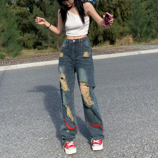 키큰녀 롱다리 유니크 스트릿 워싱 데님 청바지