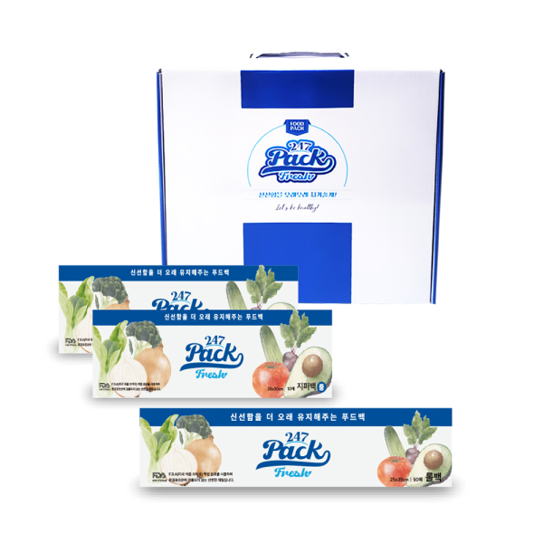 (백화점판매상품)247 프레쉬팩 뉴프리미엄 지퍼백 중형 2팩×롤백 1팩