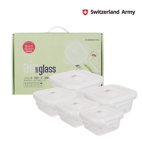 [스위칠랜드아미] 에어오븐글라스 정사각 혼합 5조 세트