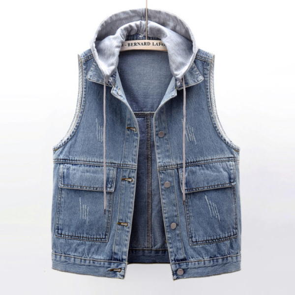탈부착 모자 캐쥬얼 워싱데님 조끼 베스트 청조끼