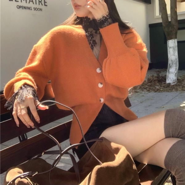 세트 시스루 올 레이스 블라우스 루즈핏 퍼프 가디건