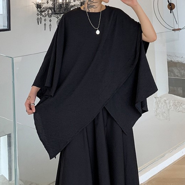 남성 유니크 언발 컷 라인 와이드 실루엣 탑 오버핏 셔츠