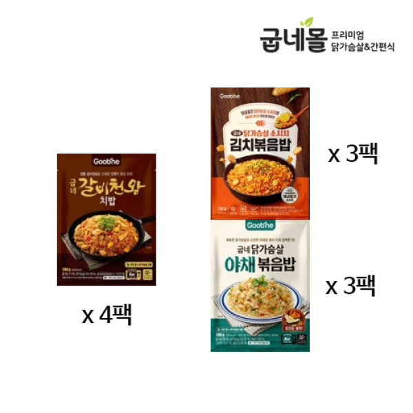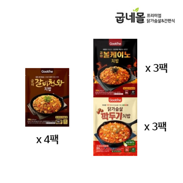 [굽네] 닭가슴살 갈비천왕 치밥 4팩+닭가슴살 소시지 김치볶음밥 3팩+닭가슴살 김치볶음밥 3팩