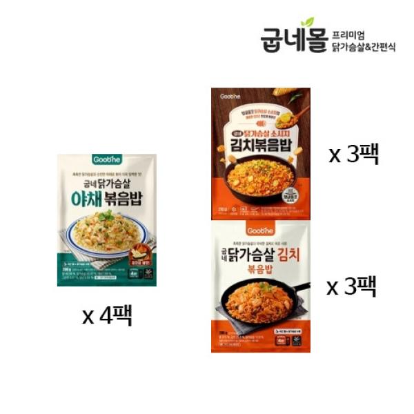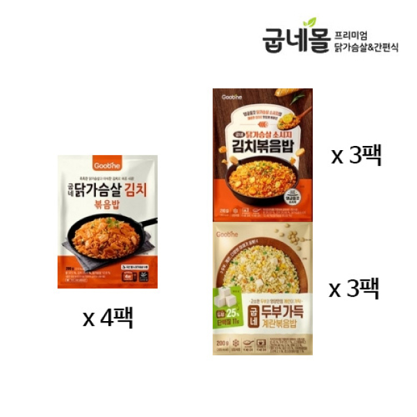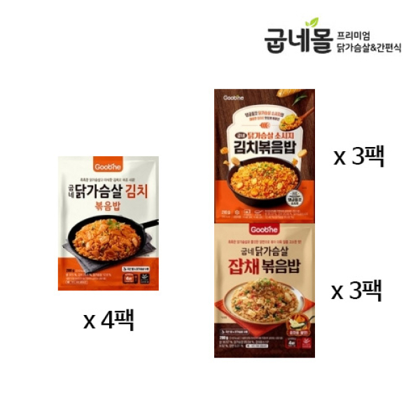 [굽네] 닭가슴살 잡채볶음밥 4팩+닭가슴살 소시지 김치볶음밥 3팩+닭가슴살 김치볶음밥 3팩
