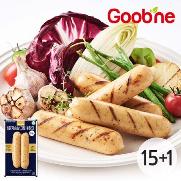 [굽네] 닭가슴살 그릴후랑크 마늘 120g 15+1팩