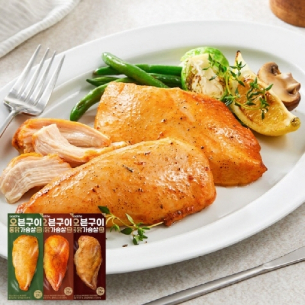 [굽네] 오븐구이 통 닭가슴살 3종 7팩 (오리지널3, 매콤바베큐2, 양념갈비맛2)
