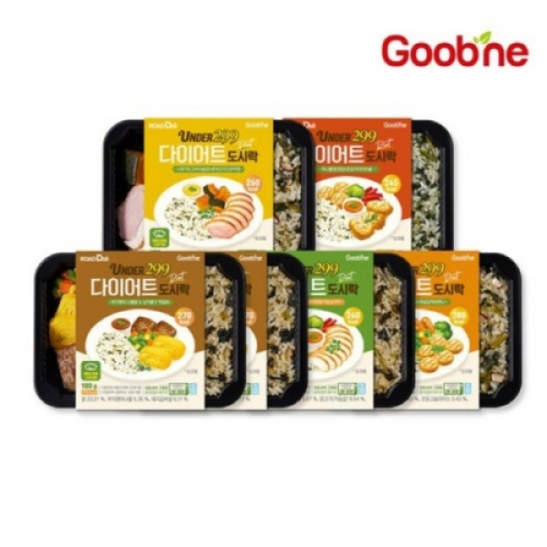 [굽네] 다이어트 도시락 5종 5팩 (납짝떡갈비1,훈제오리단호박찜1,한입귀리미트볼1,탱글갈릭비엔나1,매콤청양큐브1)
