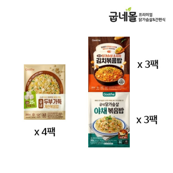 [굽네] 닭가슴살 두부 가득 계란볶음밥 4팩+닭가슴살 소시지 김치볶음밥 3팩+닭가슴살 야채볶음밥 3팩
