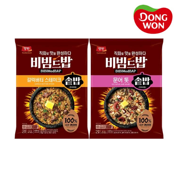 [동원] 비빔드밥 갈릭버터 스테이크 솥밥 420g 2개 + 비빔드밥 문어톳솥밥 420g 1개