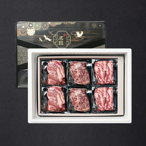 1등급 숙성 한우암소 꽃등심 구이혼합 선물세트 8호 900g (꽃,채,국)