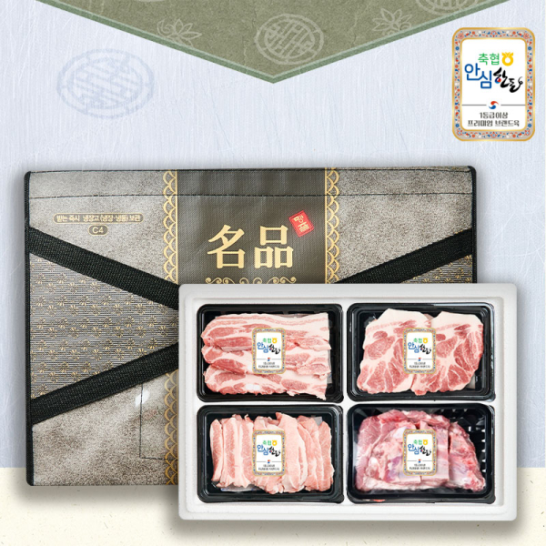 [축협안심한돈] 1등급 으뜸선물세트 4호 1.6kg (삼겹400,삼겹400,목살400,목살400)