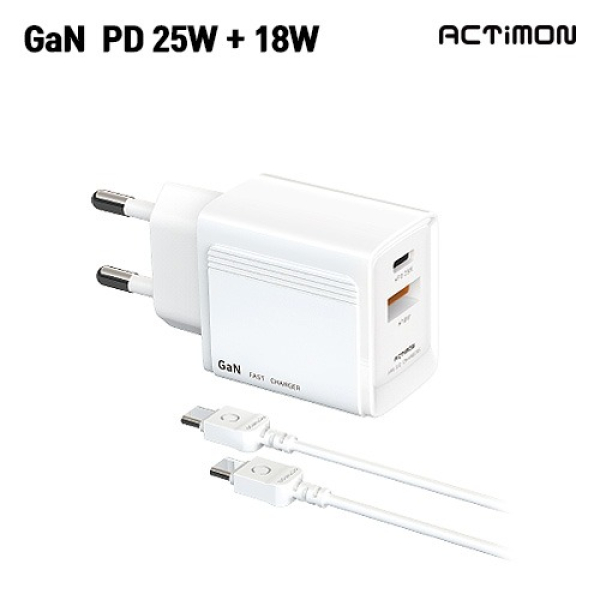 엑티몬 25W 2포트 초고속 충전기 GaN (CtoC)