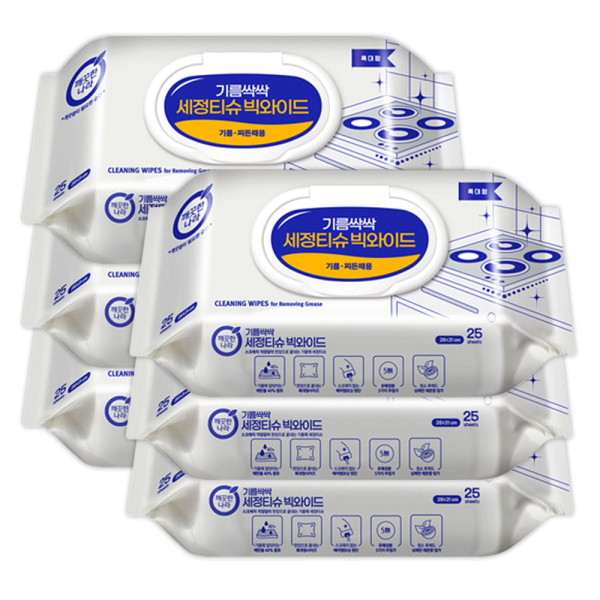 [깨끗한나라] 기름싹싹 세정티슈 빅와이드 캡형 25매 6개