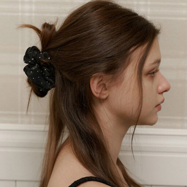 [New입점특가] 카인더베이비 kindababy black glitter pearl satin scrunch