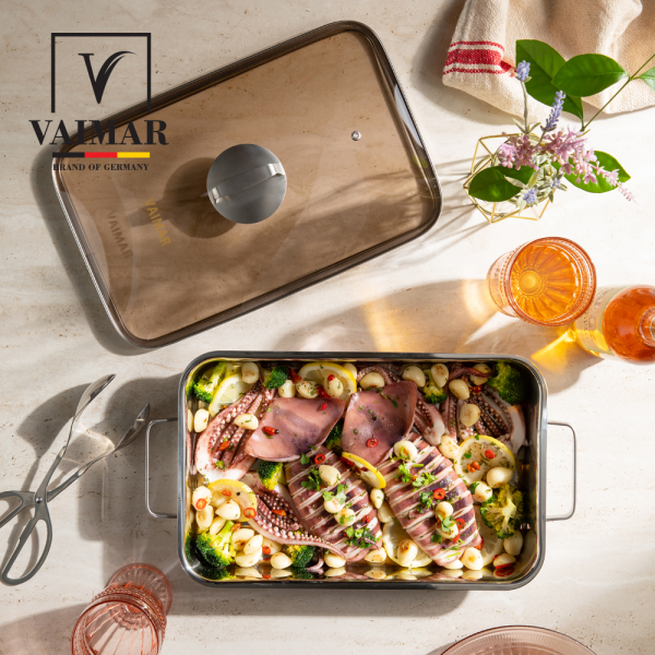 독일 바이마르 히든쉐프 스테인레스 와이드 직사각팬 (2종) (유리뚜껑 포함)