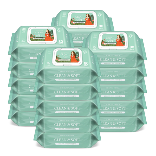 한예지 클린앤소프트 시그니처 프리미엄 고평량 엠보 물티슈 캡형 80매 20팩 "60 gsm