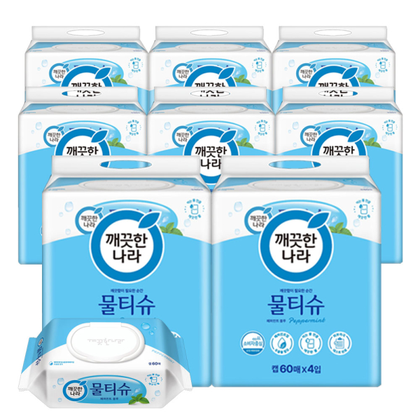[깨끗한나라] 물티슈 페퍼민트 60매 4입 8팩 기획