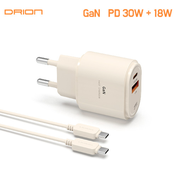 드리온 30W 2포트 초고속 충전기 (CtoC) 베이지