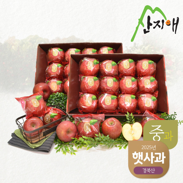 [산지애] 씻어나온 꿀사과 3kg 2box (중대과) /부사 당도선별