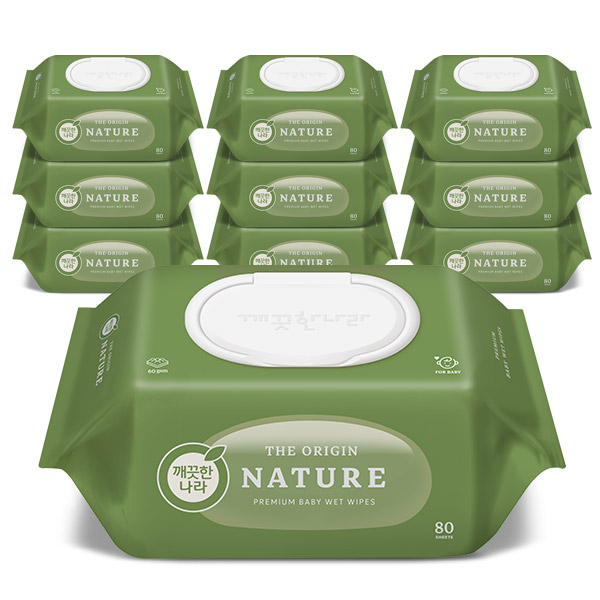 깨끗한나라 디 오리진 네이처 물티슈 캡 80매 x 10입