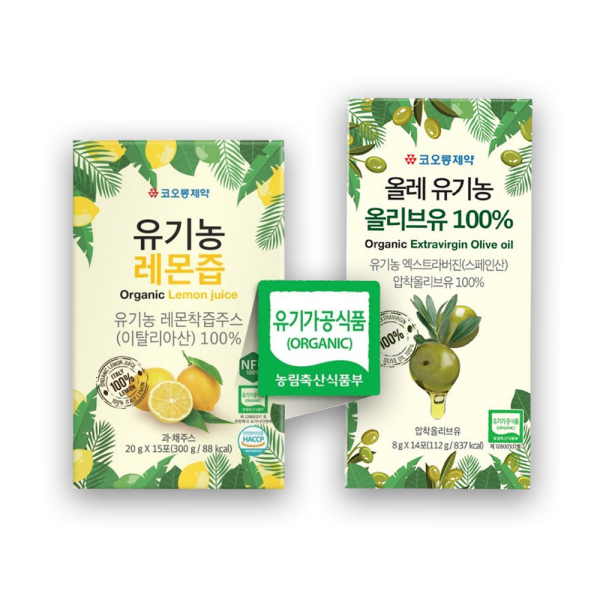 [코오롱제약] 유기농 올리브유 엑스트라버진 스틱 8g x 28포 & 이탈리아 유기농 레몬즙(100%) 20g x 30포