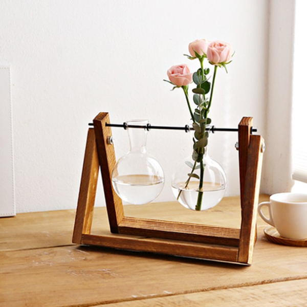 네이처드림 원목 스윙 유리꽃화병 2구